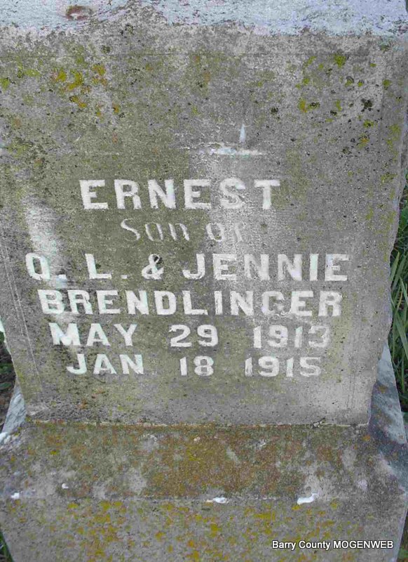 | BRENDLINGER, Ernest | May 29, 1913 | Jan. 18, 1915 | Inscription: "Son of O. L. and Jennie Brendlinger" - Research Note: He was the son of Leroy Brendlinger and Jenny (DeCocq) (Brendlinger) Planchon. | Headstone Roberta DeCocq Note Phyllis Long Photo Donna Cooper |