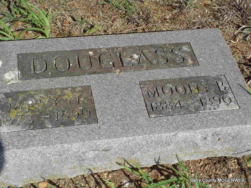 | DOUGLASS, Mary N. | 1878 | 1890 | SSW: Moody B. - Research Note: Said to be the daughter of Madison Bryon Douglass and Mary Adeline Waltrip. | Note Phyllis Long Photo Donna Cooper |
