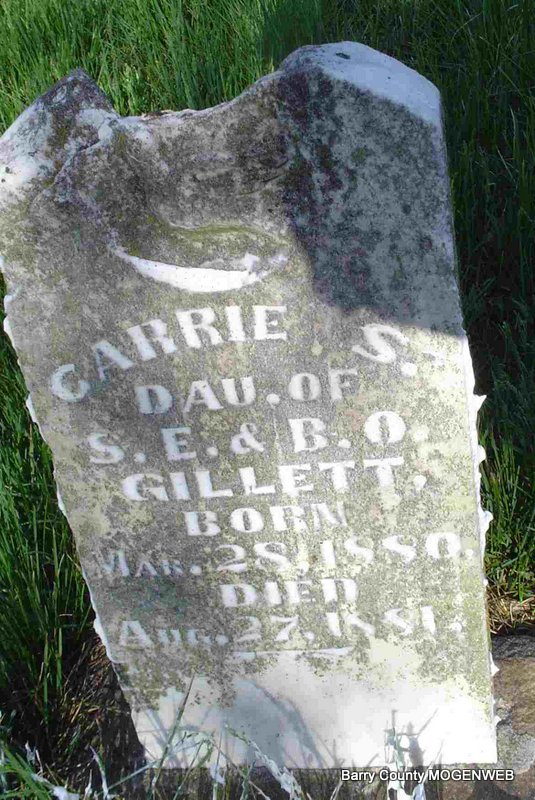| GILLETT, Carrie S. | Mar. 28, 1880 | Aug. 27, 1881 | Inscription: "Dau. of S. E. and B. O." | Photo Donna Cooper |