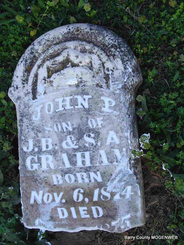 | GRAHAM, John P. | Nov. 6, 1874 | __ , 1875 | Inscription: "Son of J. B. and S. A." | Photo Donna Cooper |