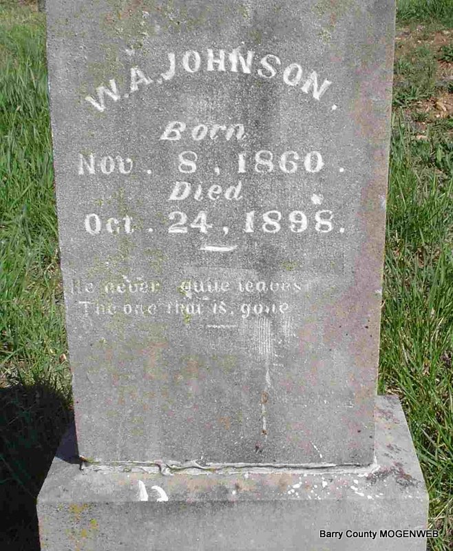 | JOHNSON, W. A. | Nov. 8, 1860 | Oct. 24, 1898 | No Data | Photo Donna Cooper |