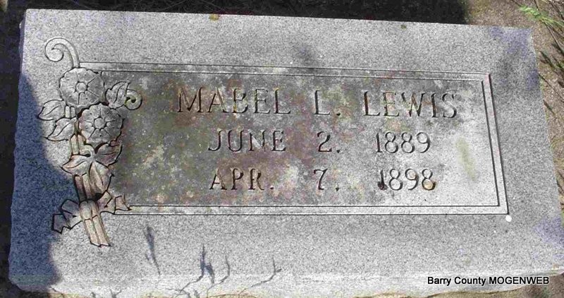 | LEWIS, Mabel L. | June 2, 1889 | Apr. 7, 1898 | No Data | Photo Donna Cooper |