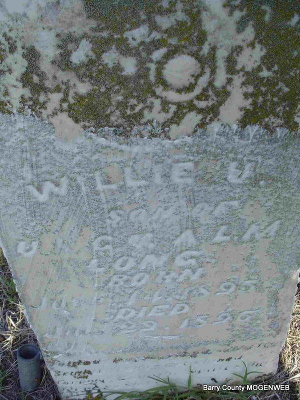 | LONG, Willie U. | June 14, 1895 | July 29, 1896 | Inscription: "Son of U. S. G. and A. L. M." - Research Note: Son of U. S. Grant Long and Augusta Counts. | Note Phyllis Long Photo Donna Cooper |