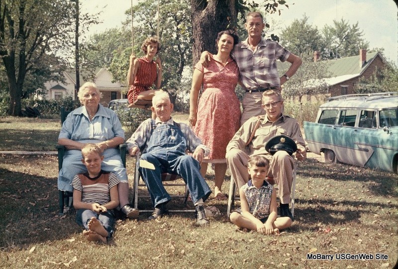 Taken in Exeter, MO, Sept. 1959 Seated in Swing - Hope Martin, standing Alma (Haddock) Martin and her husband Carl Dane Martin, Sr. Seated: l-r: Florence (Moore) Haddock, Charles William Haddock, Dane Martin Front: Tim and Kathy Martin Photo was submitted by Dane Martin, now deceased. Carl Dane Martin Jr. of Washburn, Missouri passed away on Friday, February 27, 2009 at his home in Greasy Creek Hollow, in Washburn. He was a son of Carl Dane Martin, Sr. and Martha (Haddock) Martin and was born on February 14, 1941 at the Stella Hospital in Stella, Missouri. He was united in marriage to Mary Bryant on August 17, 1970 in Marysville, Washington. Dane was a veteran of the United States Army. He was a Master Journeyman Machinist most of his life and worked as a police officer for 24 years. He was an avid wood worker and flint knapper. He was the previous owner of the St. Louis Mines in the Cascade Mountains of Washington and was publisher of Chips Magazine. Dane and Mary moved to Greasy Creek Hollow in April of 1998 from the state of Washington. He was ordained as a Reverend in Missouri and enjoyed holding marriage ceremonies for other fellow knappers at knapper conventions. He was a member of the Amateur Archeologist Association. Family Photos Submitted in 2009 Dane Martin, now deceased |
