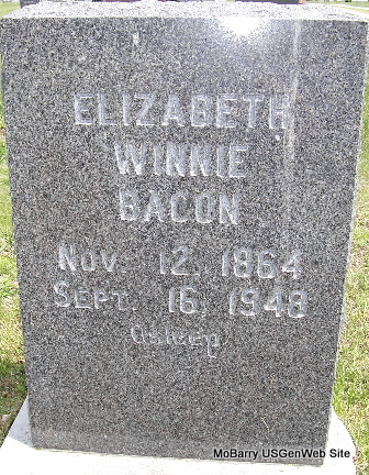 | BACON, Elizabeth Winnie (STATER) | Nov. 12, 1864 Arcola, Douglas Co., IL |