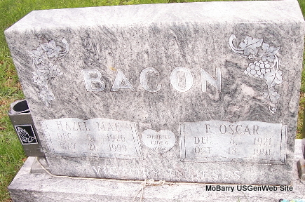 | BACON, Oscar Frederick | Dec. 8, 1921 | Oct. 18, 1991 | SSW: Hazel Mae - Research Note: He was the son of Frederick Irvin Bacon and Artie Stella Hilburn. | Census Phyllis Long Photo Fred and Neoma Sherman |