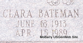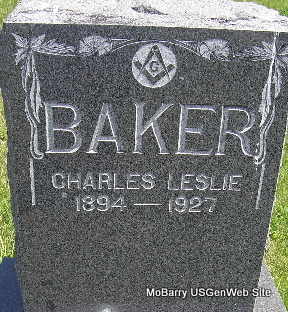 | BAKER, Charles Leslie | Dec. 1894 | 1927 | Research Note: Son of John W. Baker and Sarah Ova Bates. Ova Bates, age 21, married John W. Baker, age 30, on Apr. 25, 1894 in Cassville, Barry Co.,MO. - 1900 Census, Exeter, Barry, Missouri - William N. Bates, head, born Nov. 1833 GA, age 66, parents born NC; Sarah J., wife, born Mar. 1843 AR, age 57, married 40 years, mother of 7 children, 3 living, father born TN, mother GA; Allie daughter, born Jan. 1871 MO, age 29; Ova Baker, daughter, born Apr. 1873 MO, age 27, married 6 years, mother of one child, living; Leslie, grandson, born Dec. 1894 MO, age 5, both parents born MO; William Searcy, boarder, born Jan. 1869, age 32, single, born KY, parents born KY. | Census MO Marriage Records Phyllis Long Photos Fred and Neoma Sherman |