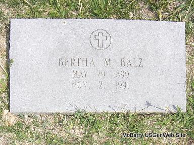 | BALZ, Bertha M. | May 29, 1899 | Nov. 2, 1991 | Research Note: Wife of Alfred Eli Balz. | Census Phyllis Long Photos Fred and Neoma Sherman |