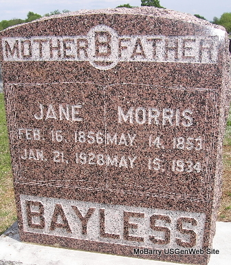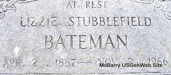 Inscription: "Asleep" - Research Note: Her husband was Charles Taylor Bacon, deceased. She was the daughter of Henry Stater and Lydia Ann Smith, both born KY. Mrs. Lora Belle Main of Star Rt., Washburn, MO was the informant on the death certificate. | Death Certificate Phyllis Long Photo Fred and Neoma Sherman |
