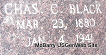 | BLACK, Charles C. | Mar. 23, 1880 | Jan. 4, 1941 | Research Note: He was the son of William C. Black and Sally A. Fenex/Phoenix. Both buried at Washburn Prairie Cemetery. Charles C. Black, age 21, married Leona "Ona" Erwin, age 19, on mar. 24, 1901 in Washburn, Barry Co., MO. - January 27, 1917, Saturday, Cassville Democrat - Washburn and Greasy Creek Mixups: John Banks of Trent Creek delivered a drove of stock hogs to C.C. Black Friday. - Cassville Democrat, August 8, 1925 - J. S. Roller and C.C. Black made a business trip to Pitcher, Okla., and Parsons, Kans., last week. | Census Online Newspapers MO Marriage Records Phyllis Long Photo Fred and Neoma Sherman |