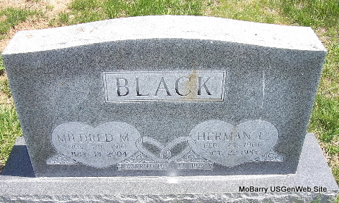 | BLACK, Mildred M. | Nov. 29, 1910 | July 13, 2004 | SSW: Herman L. | Photo Fred and Neoma Sherman |