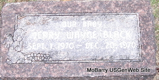 | BIBB, Earl W. | Aug. 4, 1905 | Aug. 4, 1905 | Inscription: "Son of J. M. and Clare Bibb" | Photo Fred and Neoma Sherman |