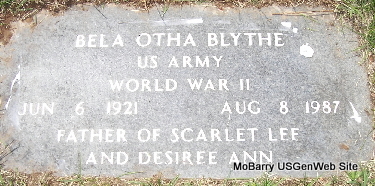 | BLYTHE, Bela Otha | June 6, 1921 Grandview, Carroll Co., AR |