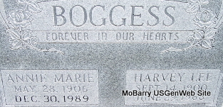 | BOGGESS, Annie Marie (LASTER) | May 28, 1906 Ozark, Franklin Co., AR |