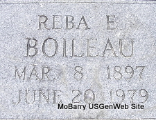 | BOILEAU, Reba E. | Mar. 8, 1897 | June 20, 1979 | No Data | Photo Fred and Neoma Sherman |