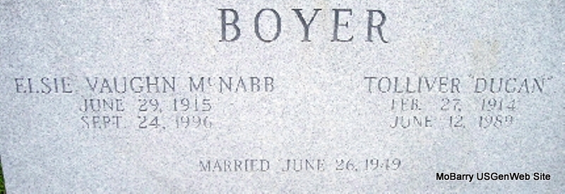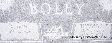 | BOLEY, A. Fain | Dec. 2, 1925 | No Date | SSW: Hurshell S. - Inscription: "Married Dec. 26, 1942" | Photo Fred and Neoma Sherman |