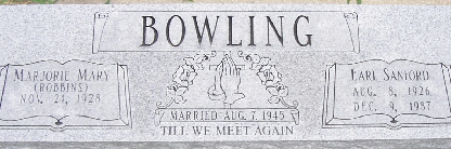 SSW: Marjorie Mary Robbins - Inscription:"Married August 7, 1945" - Research Note: He was the son of Walter Douglas Bowling and Sadie Bell Moore. | Census Phyllis Long Photo Fred and Neoma Sherman |