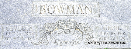 | BOWMAN, Cecil | June 10, 1902 Barry Co., MO |