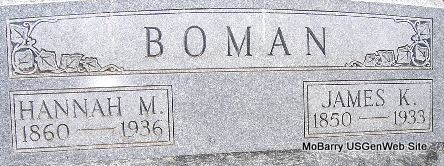 | BOMAN, James K. | Mar. 5, 1850 Exeter, Barry Co., MO |