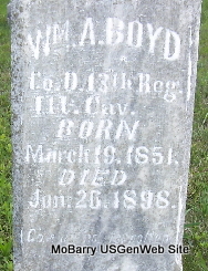 Research Note: He was married and a farmer. His mother's name was Nancy, the rest was marked don't know. - His first wife, mother of all his children, was Mary Ann "Polly" Burton. Daniel Burton born 1822 married Mary Ann born 1821 in 1844 in KY. Second wife was Dorcas (Nichols) (Webster) Burton. Dyer D. Burton, age 82, married D. C. Webster, age 81, on June 19, 1906 in Exeter, Barry Co., MO. - Civil War Record: Dyer D. Burton enlisted in Company A, Indiana 49th Infantry Regiment on Nov. 21, 1861. Mustered out on Sept. 13, 1865 at Louisville, KY. - Link to Dyer's photo and bio. | Death Certificate MO Marriage Records Int'l Marriage Records Civil War Records Phyllis Long |