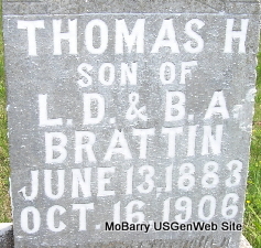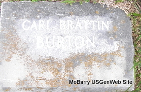 | BURTON, Carl Brattin | 1908 | July 9, 1921 | Research Note: Son of John W. Burton and Anna Matilda (Brattin) (Burton) Lawson who is buried at Maplewood Cemetery. Anna Brattin, age 19, married John W. Burton, age 25, on Mar. 11, 1903 in Cassville, Barry Co., MO. John died in 1919. | Note Frances Albert MO Marriage Records Phyllis Long Photo Fred and Neoma Sherman |