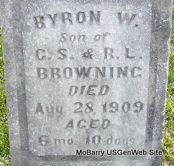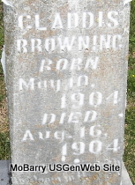 Inscription: "Age 7 Mos." - Research Note: He was the son of George W. Browning and Mary J. Long. | Death Certificate Phyllis Long Photo Fred and Neoma Sherman |
