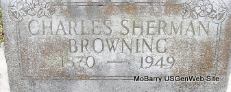 Research Note: He was the son of John Browning and Esther Rogers. His wife was Lillie House. Anthony Browning of Neosho, MO was the informant on the death certificate. - March 9, 1911, Thursday, Cassville Republican - Exeter News: Mrs. Jennie Graham of Fayetteville, Ark., is at her father's, W. P. Browning, sick with a kidney trouble. - June 15, 1911, Thursday, Cassville Republican - Mrs. Jennie Graham, wife of will Graham of Fayetteville, Ark., died Thursday, June 8, at the home of her parents, Mr. and Mrs. W. P. Browning, in Exeter following a long illness of kidney trouble. Both Mr. and Mrs. Graham formerly lived at Exeter. A husband and one small child are left of the family, which is now robbed of the love and tender care which the wife and mother alone could give. The funeral services were held Friday and Interment made in the Exeter Cemetery. - Cassville Republican, Thursday, August 1, 1918 - Three Sons In Navy: Mr. and Mrs. W. P. Browning of Exeter now have three sons in the United States Navy. Their youngest son, Willis, received word Sunday that his application for enlistment had been accepted and instructed to report at St. Louis. Their oldest son, Key, is in training at Great Lakes. He was offered a promotion as First Commander in his company a short time ago but declined it and asked for a transfer to the mechanical department of the aviation corps which was granted. He is in training to become a gas motor expert. A second son, Charles is in training at San Francisco, Calif. and expects to be ordered to sea soon. Mr. and Mrs. Browning have a fourth son who is classified in class II B and has offered his services in the medical reserve corps. The Browning family is doing "its best" in the winning of the war. | Death Certificate Online Newspapers Phyllis Long Photo Fred and Neoma Sherman |