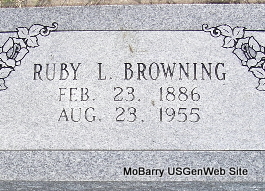 | BROWNING, Ruby L. (RADLIFF) | Feb. 23, 1886 Mountain View, Howell Co., MO |