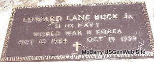 Inscription: "S1 US NAVY WORLD WAR II, KOREA" - Research Note: Son of Edward Lane and Marybelle (Smallwood) Buck. Navy Veteran. | Barry Co. Advertiser Oct. 20, 1999 Mary Homesley Photo Fred and Neoma Sherman |