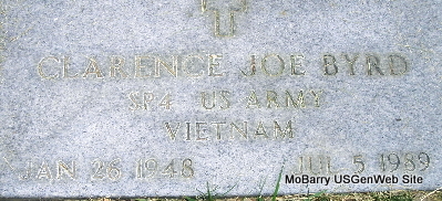 Inscription: "SR 4 US ARMY VIETNAM" - Research Note: He was the son of Alcie Dupree Byrd and Bessie Evelyn Lemmons. | Note Phyllis Long Photo Fred and Neoma Sherman |