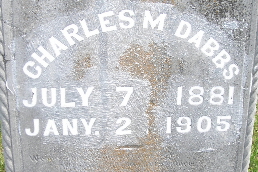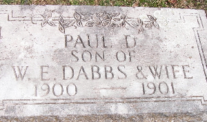 | DABBS, Paul D. | 1900 | 1901 | Inscription: "Son of W. E. Dabbs and Wife" | Photo Fred and Neoma Sherman |