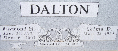 SSW: Selma D. - Inscription: "Married Dec. 24,1945" - Research Note: He was the son of Emin G. and Mattie P. (Beeler) Dalton. He received his education in Washburn, and worked with the Civilian Conservation Corps before entering the United States Navy during World War II. He was a welder, retiring in 1991 and moving to Missouri to make his home. He married Selma Fischer on December 24, 1945 at Nebraska. He was preceded in death by two brothers and three sisters. | Monett Times Phyllis Long Photo Fred and Neoma Sherman |