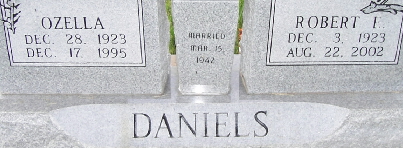 | DANIELS, Ozella (BANKS) | Dec. 28, 1923 | Dec. 17, 1995 | SSW: Robert E. - Inscription: "Mar. 15, 1942" - Research Note: She was the daughter of Rice Lot Banks and Edith Morgan. | Census Phyllis Long Photo Fred and Neoma Sherman |