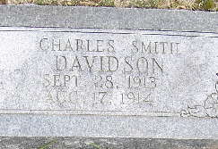 Aug. 17, 1914 | Research Note: He was a son of Luther Monroe Davidson and Myrtle (Smith) Davidson, both born MO. - Cassville Republican, Aug. 20, 1914 - Charles, 11 months old son of Mr. and Mrs. Luther Davidson, of Exeter, died Monday. The funeral services were conducted at the Baptist church in Exeter, Tuesday morning at 11 o'clock. Burial was made at the Exeter Cemetery. | Death Certificate Online Obit Phyllis Long Photo Fred and Neoma Sherman |