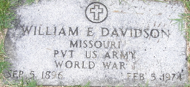 Inscription: "Missouri Pvt. US Army World War I" - Research Note: He was the son of James T. Davidson and Lula A. Linebarger. His wife was Lela L. Davidson. | Headstone Cheryl Census Phyllis Long Photo Fred and Neoma Sherman |