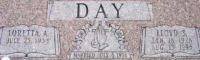 | DAY, John Edmund | Apr. 17, 1925 | Oct. 16, 2003 | SSW: Pauline Juanita - Inscription: "Married July 23, 1952" - Research Note: He was the son of Henry Bennett Day and Sarah Alma Mullins. | Family History by J. D. Day Phyllis Long Photo Fred and Neoma Sherman |