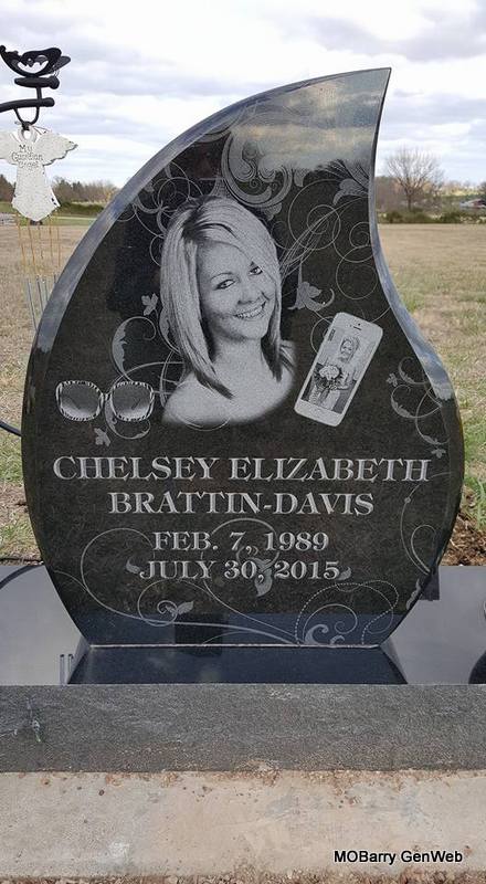 Research Note: She was the daughter of Greg and Glenda (Hendrix) Brattin. She was a 2007 graduate of Exeter High School. On September 20, 2014, she was united in marriage to Bryan Davis. She was employed by Tyson Foods in Monett. Chelsey attended Celebrate Recovery at the First Baptist Church in Cassville, and was a member of the First Baptist Church in Exeter. Chelsey was preceded in death by her grandfather, Clifton Hendrix, and Charlotte Thomas, whom they called Mammers. - Killed in a car accident. - Another Photo - Back of Stone | White Funeral Home Phyllis Long Photos Glenda Brattin |