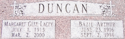 | DUNCAN, Margaret Glee (LACEY) | July 1, 1913 Exeter, Barry Co., MO |