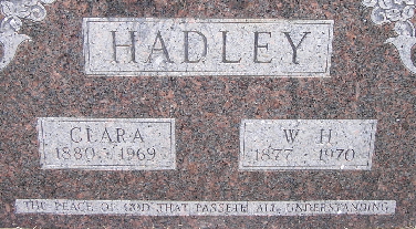 SSW: Clara - Research Note: W. H. Hadley, age 25, married Clara James, age 21 in Barry Co., MO on Nov. 12, 1902. He was the son of Sidney Hadley and Sarah Elizabeth Ferguson. Rural Exeter, Barry Co., MO resident. Tisha Birkes of Tulsa, OK was the informant on the death certificate. | Death Certificate Cheryl MO Marriage Records Census Phyllis Long Photo Fred and Neoma Sherman |