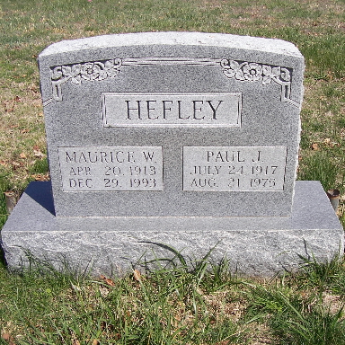 | HEFLEY, Paul James | July 24, 1917 | Aug. 21, 1975 | SSW: Maurice W. - Research Note: Son of Clyde Cleveland Hefley and Grace Babb. | Census Phyllis Long Photo Fred and Neoma Sherman |