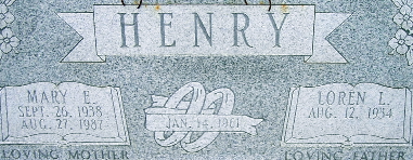 SSW: Mary E. - Inscription: "Married Jan. 14, 1961 - Research Note: He was the son of George E. and Freda (Morgan) Henry. On January 14, 1961, he was united in marriage to Mary Garrison, who preceded him in death, and to this union three children were born. On March 27, 1995, he married Barbara (Taylor) Hill. Preceding him in death were his parents; two brothers, Glen Henry and Russell Henry and one sister, Pauline Banks. Loren received his education at Measle Prairie School. Most of his life was spent in Southwest Missouri, where he was a carpenter. From April 10, 1957 until April 7, 1959, Loren served in the United States Army as an air defense missile crewman. | Fohn Funeral Home Phyllis Long Photo Fred and Neoma Sherman |