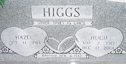 SSW: Hugh Higgs - Inscription: "Married June 4, 1932" - Parents of Fred Harvey (died 5 days old), HD (Hugh Darrell) died Oct. 5, 2003, Franklin (Delano), Martha Jane (married a Johnson). Hazel was married to Rev. Hugh Monroe Higgs, they had four children. Hazel's Granddaughter Nichole was a source for Frances. Hazel Margaret (Erwin) Higgs, age 92 years, died at 7:48 p.m., Friday, March 10, 2006, in Christian Health Care in Springfield, Missouri, after a short illness. Phyllis posted: Hazel, daughter of Ora (Walker) Erwin and Judge Erwin, was born October 11, 1913, in Wayne, Barry Co., Missouri, one of eight children. Hazel was the last surviving child of Ora and Judge. | Headstone Cheryl Note Frances Albert Note Gerald Haddock Note Phyllis Long Photo Fred and Neoma Sherman |