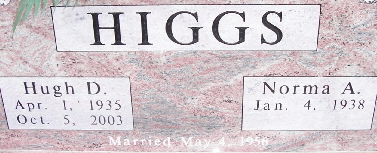 SSW: Hugh D. - Inscription: "Married May 4, 1956" - Research Note: She was the daughter of Frank Leslie and Velva Mae (Cross) Fritts. On May 4, 1956 in Wichita, Kansas she was united in marriage to Hugh Darrell "H.D." Higgs, who preceded her in death on October 5, 2003. Also preceding her in death were her parents; three brothers and four sisters. Norma attended High School in Wichita, Kansas. She was employed by Beech Aircraft in Wichita as an expeditor. After retiring in 1997 she moved to Exeter, moving back to Wichita in 2004 after H.D. passed away. | Fohn Funeral Home Phyllis Long Headstone Gerald Haddock Photo Fred and Neoma Sherman |