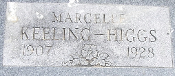 Research Note: Marcelle was the first wife of Chester O. Higgs. Daughter of Sam W. Keeling and Sarah Drake. Chester O. Higgs was the father of Joe Higgs and Betty (Higgs) Lamberson. - Cassville Democrat, Dec. 21, 1928 - She was the daughter of Mr. and Mrs. Sam W. Keeling, old and highly respected citizens of this county. She was married to Chester Higgs Dec. 31, 1927. She is survived by her husband Chester Higgs, her father and mother, one brother, Eugene Keeling, two sisters Goldie and Lorene, also a large number of relative and a host of friends. The beautiful floral offerings were carried by Mrs. O. L. Burger, Mrs. Olen Kimbrough, Misses Willodean Taylor, Geneva Talbert, Juanita Johnson and Beth Florey. The pallbearers were: Oral Burger, Rob May, Freddie Lauderdale, Vernie Davidson, Earl Antle and Floyd Gailey. - Another Photo | Note Photo Ralph and Betty Lamberson Obit Barbara Erwin Death Certificate Phyllis Long Photo Fred and Neoma Sherman |