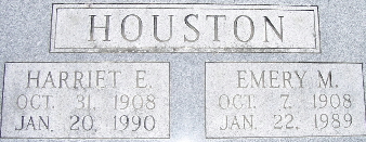 | HOUSTON, Harriet E. | Oct. 31, 1908 | Jan. 20, 1990 | SSW: Emery M. | Photo Fred and Neoma Sherman |