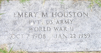 Jan. 22, 1989 | SSW: Harriet E. - Research Note: He was the son of George Frank Houston and Lillie Rice. - Military Stone - Inscription: "PVT US ARMY WORLD WAR II" | Census Phyllis Long Photo Fred and Neoma Sherman |