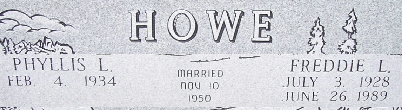 SSW: Phyllis L. - Inscription: "Married Nov. 10, 1950" - Research Note: Son of Walter W. Howe and Blanche P. Rosler. | SS Claims Index Phyllis Long Photo Fred and Neoma Sherman |