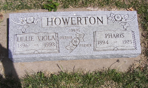 SSW: Lillie Viola - Research Note: His wife was Lillie Ellis. Son of Alex Howerton and mother's maiden name was Stephens. J. A. Howerton of Purdy, MO was the informant on the death certificate. Cause of death was gun shot in bowels. - He was the son of John Alexander Howerton and Mary A. Stephens. There are several articles about Pharis' death on ancestry.com. Pharis was shot by his father, some thought it was murder. Pharis lived a few hours after the shooting and stated that it was accidental. Never the less, his father was charged with the murder and died before going to trial. His parents are buried at Clark Cemetery. The news items say Pharis is buried at Clark and there is a single stone there. However, there is a double stone with his wife at Maplewood Cemetery. | Death Certificate Obits Phyllis Long Photo Fred and Neoma Sherman |