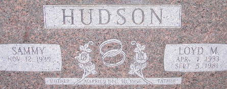 | HUDSON, Sammy (SPARKMAN) | Nov. 12, 1935 | No Date | SSW: Loyd M. - Inscription: "Married Dec. 30, 1956" - Research Note: Sammy also shares a stone with her second husband Jerry Wayne Schmidt in Maplewood Cemetery. - Another Photo | Note Phyllis Long Photo Jenny Hobbs Thomas Photo Fred and Neoma Sherman |