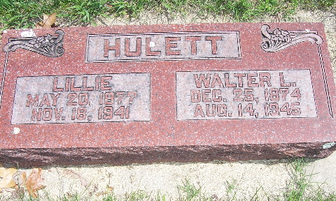 | HULETT, Lillie (KUEHNER) | May 20, 1877 | Nov. 18, 1941 | SSW: Walter L. - Research Note: She was the daughter of Michael and Barbara Kuehner, both born Germany. | Census Phyllis Long Photo Fred and Neoma Sherman |